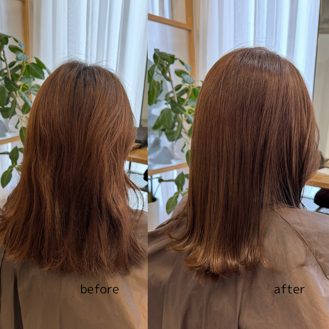 ・長さに関しては2ヶ月後の予定(ヘアセット)もあるので今回はあまり変化を付けずに2ヶ月後に今回くらいの長さに戻るように逆算して2センチほどカットいたしました