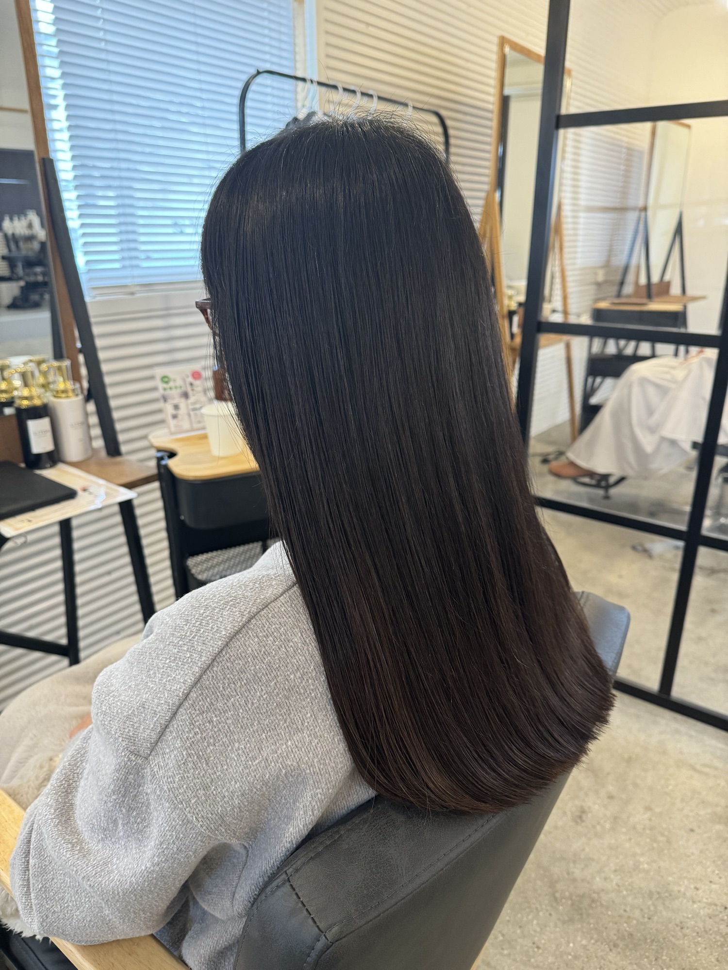 今日はカット、ヘッドスパ〈アロマロング45〉と髪質改善トリートメントを施術させて頂いたお客様の施術事例をご紹介します。